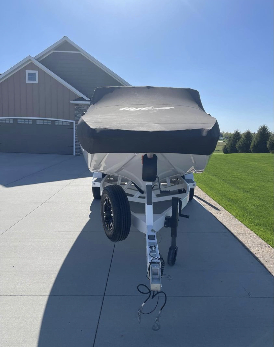 It’s designed for water sports like wakeboarding, wakesurfing, and waterskiing. The boat is often equipped with features like ballast systems and wake-shaping devices to create ideal wakes for these activities. It is shown on a trailer, likely for transportation to and from the water.